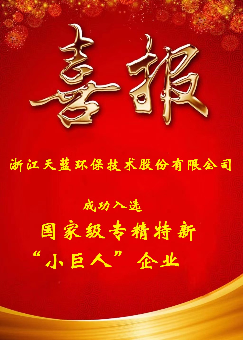 天藍環(huán)保作為全國環(huán)境污染治理領(lǐng)域的龍頭企業(yè)之一,領(lǐng)銜起草了3項國家行業(yè)標準,獲得“國家級專精特新小巨人企業(yè)”、“中國環(huán)保產(chǎn)業(yè)骨干企業(yè)”、“浙江省創(chuàng)造力百強企業(yè)”等榮譽稱號。